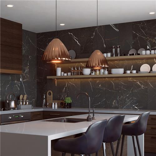 Capturing the appearance of a marble look, our Reve Noir Porcelain Floor and Wall Tile features a slightly textured, matte finish, providing decorative appeal that adapts to a variety of stylistic contexts. Containing 44 different print variations that are randomly distributed throughout each case, this black rectangle tile offers a one-of-a-kind look. With its impervious, frost-resistant features, this tile is an ideal selection for a variety of spaces including indoor and outdoor commercial and residential installations, kitchens, bathrooms, backsplashes, showers, hallways, entryways and fireplace facades. Discover more products from the Merola Tile Reve Collection to complete your design. To ensure optimal results, please consult with your installer and review the product specifications to confirm that this tile meets the specific needs of your project.