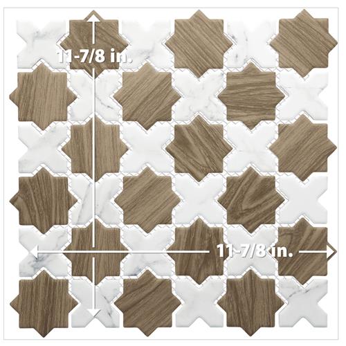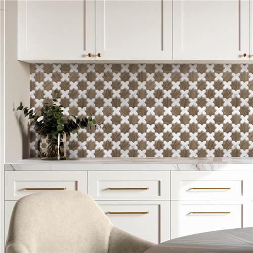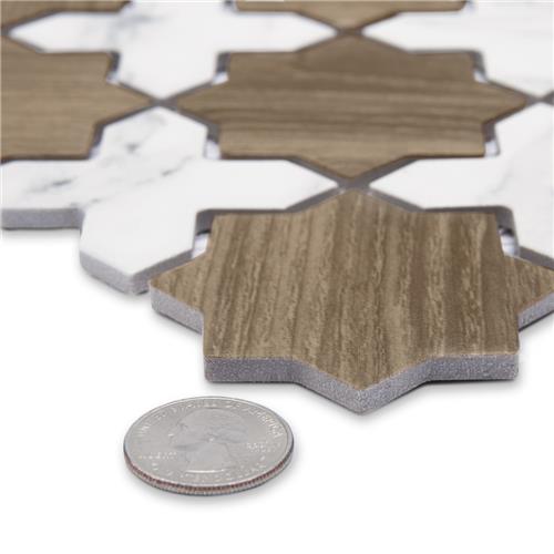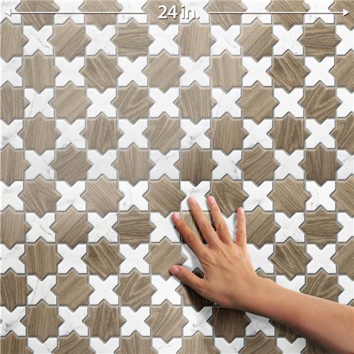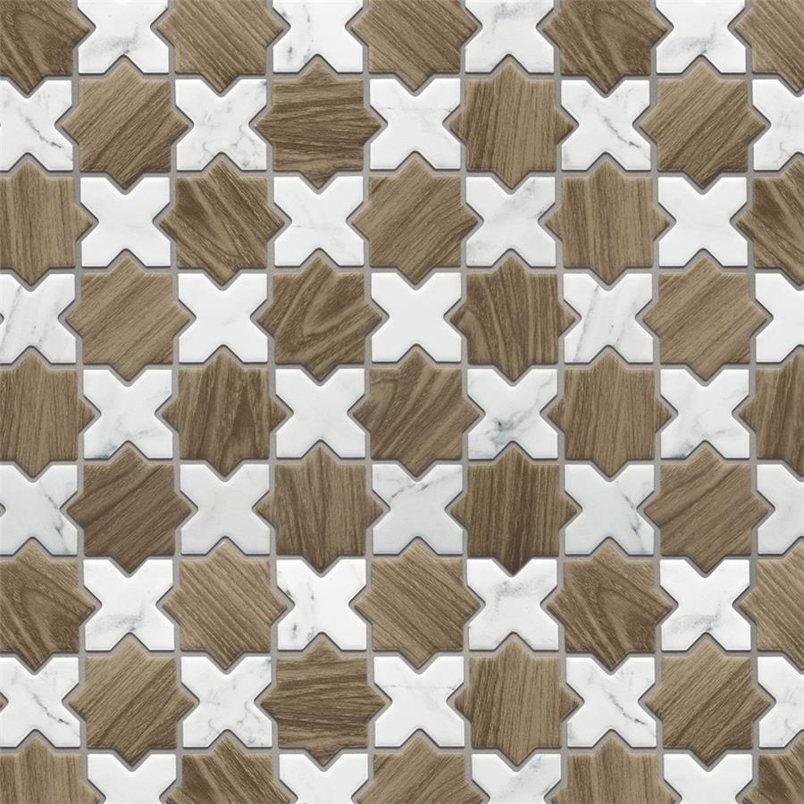 Replicating a wood look, our Llama 2 in. Star Noce with Calacatta Cross Porcelain Floor and Wall Tile features a slightly textured, matte finish, providing decorative appeal that adapts to a variety of stylistic contexts. Llama Mosaics combine the elegance of marble-look surfaces with the warmth and texture of wood grain, creating a distinctive visual contrast, coordinating seamlessly with our Llama or Timeless Collections. With its impervious, frost-resistant features, this brown specialty mosaic is an ideal selection for a variety of spaces including indoor and outdoor residential installations, bathrooms, backsplashes, showers, hallways, pools and fireplace facades. Discover more products from the Merola Tile Llama Collection to complete your design. To ensure optimal results, please consult with your installer and review the product specifications to confirm that this tile meets the specific needs of your project.