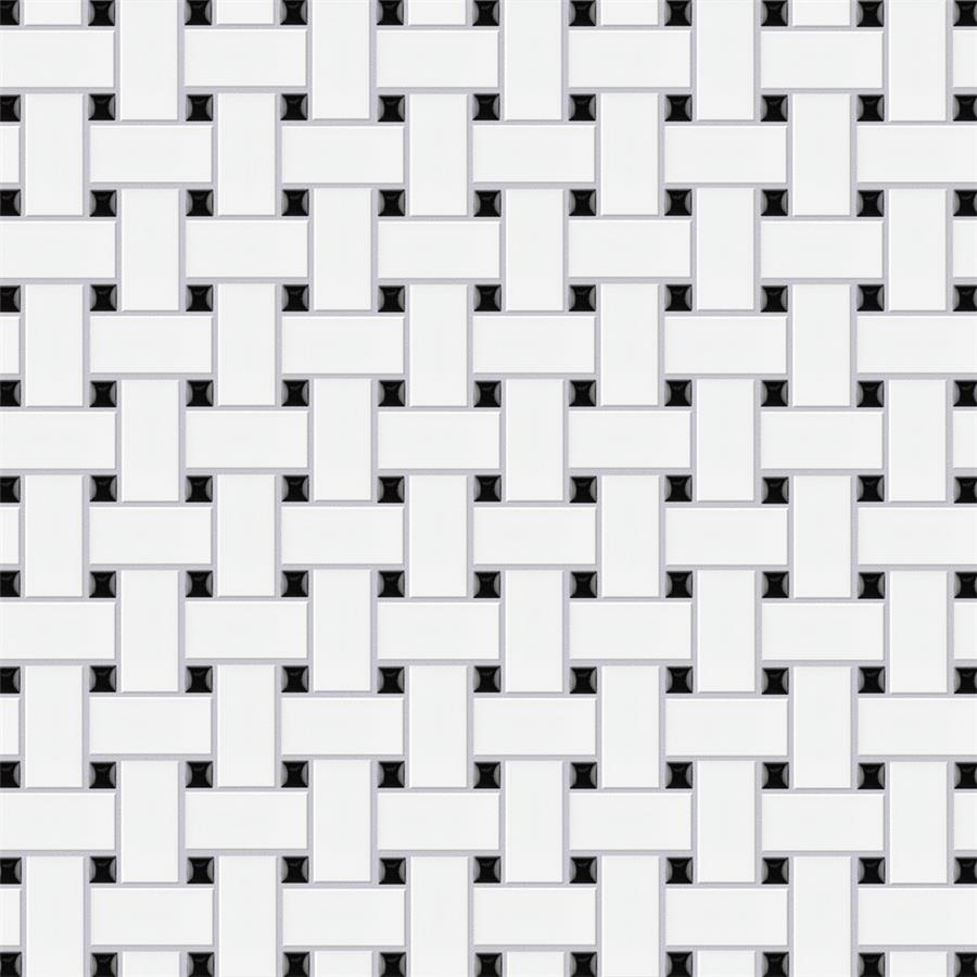 Transform your space into a tribute to retro design with our Metro Basketweave Matte White with Glossy Black Dot 11-3/4 in. x 11-3/4 in. Porcelain Mosaic Floor and Wall Tile. As a modern deviation from the classic mosaic, this tile option is a throwback to traditional retro design with a contemporary feel. Matte white chips are accentuated by small glossy black dots that provide a woven illusion. These mosaic chips are precisely arranged on an interlocking mesh to create a seamless installation. This minimalistic geometric porcelain mosaic is unique yet simplistic enough to integrate into any design, ranging from traditional style renovations to modern home projects. Its impervious and glazed features make this an ideal tile for indoor and outdoor residential use, including backsplashes, bathrooms, showers and kitchens. Tile is the better choice for your space. This tile is made from natural ingredients, making it a healthy choice as it is free from allergens, VOCs, formaldehyde and PVC.