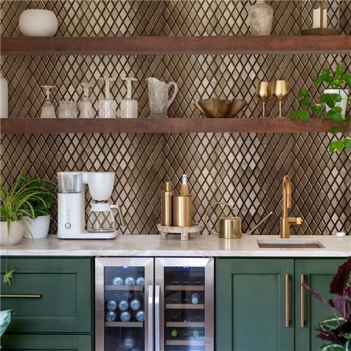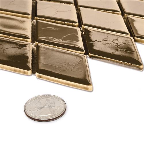 Offering a mosaic look, our Hudson Kite Gold Porcelain Floor and Wall Tile features a smooth, glossy finish, providing decorative appeal that adapts to a variety of stylistic contexts. With its impervious, frost-resistant features, this gold rhombus mosaic is an ideal selection for a variety of spaces including indoor and outdoor residential installations, bathrooms, backsplashes, showers, hallways and fireplace facades. Discover more products from the Merola Tile Hudson Collection to complete your design. To ensure optimal results, please consult with your installer and review the product specifications to confirm that this tile meets the specific needs of your project.