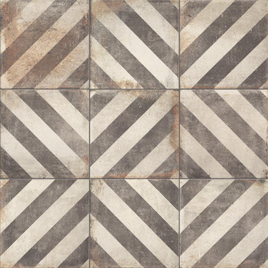 Our D’Anticatto Decor Obliqua 8-3/4 in. x 8-3/4 in. Porcelain Floor and Wall Tile radiates rustic charm. Mimicking a worn cement appearance, this porcelain tile is a subtle statement piece created by linear patterns in faded charcoal grey set on a textured light beige base glaze. This tile can be installed in several different geometric patterns. With rust colored accents and realistic imitations of scuffs and spots, this encaustic inspired tile evokes a loved, worn and century-old appearance. Available in twenty-five print variations that are randomly scattered throughout each case, the variation throughout each tile mimics an authentic aged appearance. Its impervious, frost-resistant and durable features make this tile and ideal choice for both indoor and outdoor residential installations including, backsplashes, kitchens, bathrooms, showers, entryways and patios. This tile is a perfect choice on its own or paired with other products in the D’Anticatto Collection.