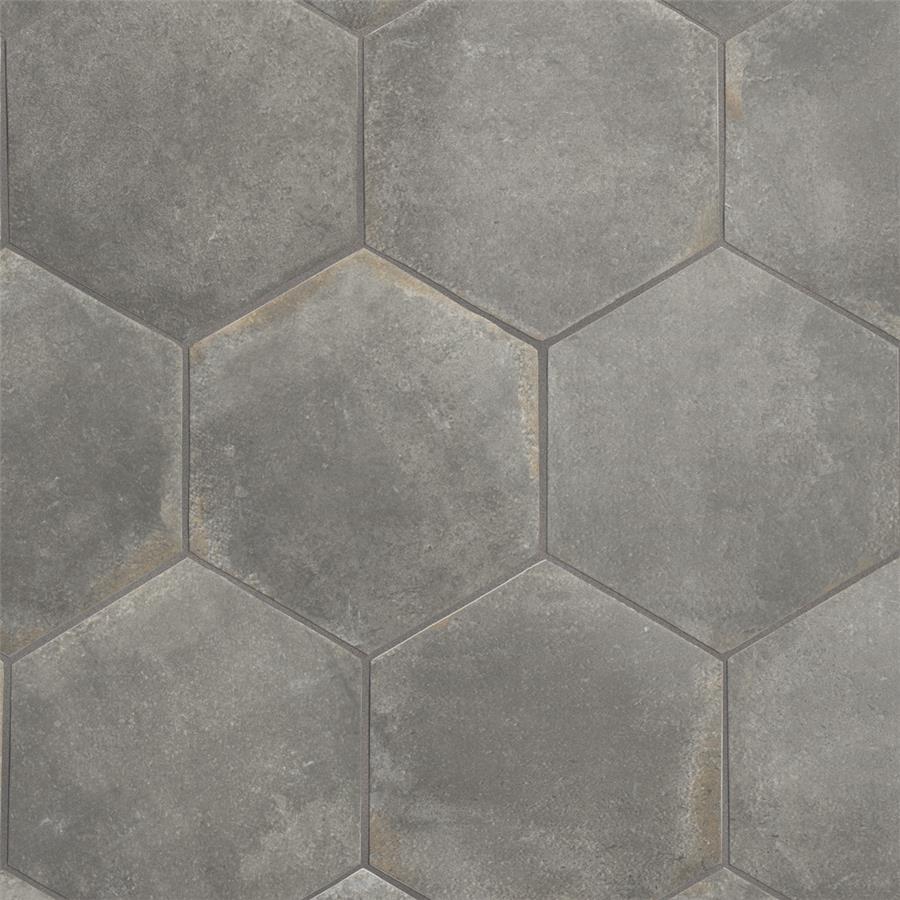 Our D’Anticatto Hex Notte 11 in. x 12-5/8 in. Porcelain Floor and Wall Tile radiates rustic charm. Mimicking a worn cement appearance, this porcelain hexagon tile is a subtle statement piece created by faded shades of charcoal grey and white. With rust colored accents and realistic imitations of scuffs and spots, this encaustic inspired tile evokes a loved, worn and century-old appearance. Available in twenty-six print variations that are randomly scattered throughout each case, the variation throughout each tile mimics an authentic aged appearance. Its impervious, frost-resistant and durable features make this tile and ideal choice for both indoor and outdoor residential installations including, backsplashes, kitchens, bathrooms, showers, entryways and patios. This tile is a perfect choice on its own or paired with other products in the D’Anticatto Collection.