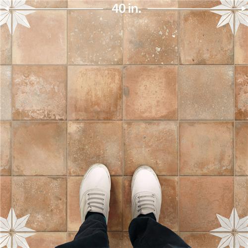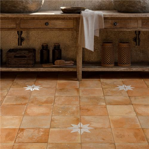 Replicating a terra cotta look, our Kings Nonna with White Corner Star Porcelain Floor and Wall Tile features a mixed textured finish, providing decorative appeal that adapts to a variety of stylistic contexts. Containing 10 different print variations that are randomly distributed throughout each case, this orange square tile offers a one-of-a-kind look. With its impervious, frost-resistant features, this tile is an ideal selection for a variety of spaces including indoor and outdoor commercial and residential installations, kitchens, bathrooms, backsplashes, showers, hallways, entryways, pools and fireplace facades. Discover more products from the Merola Tile Kings Collection to complete your design. To ensure optimal results, please consult with your installer and review the product specifications to confirm that this tile meets the specific needs of your project.