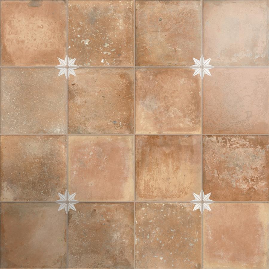 Replicating a terra cotta look, our Kings Nonna with White Star Porcelain Floor and Wall Tile features a mixed textured finish, providing decorative appeal that adapts to a variety of stylistic contexts. Containing 10 different print variations that are randomly distributed throughout each case, this orange square tile offers a one-of-a-kind look. With its impervious, frost-resistant features, this tile is an ideal selection for a variety of spaces including indoor and outdoor commercial and residential installations, kitchens, bathrooms, backsplashes, showers, hallways, entryways, pools and fireplace facades. Discover more products from the Merola Tile Kings Collection to complete your design. To ensure optimal results, please consult with your installer and review the product specifications to confirm that this tile meets the specific needs of your project.