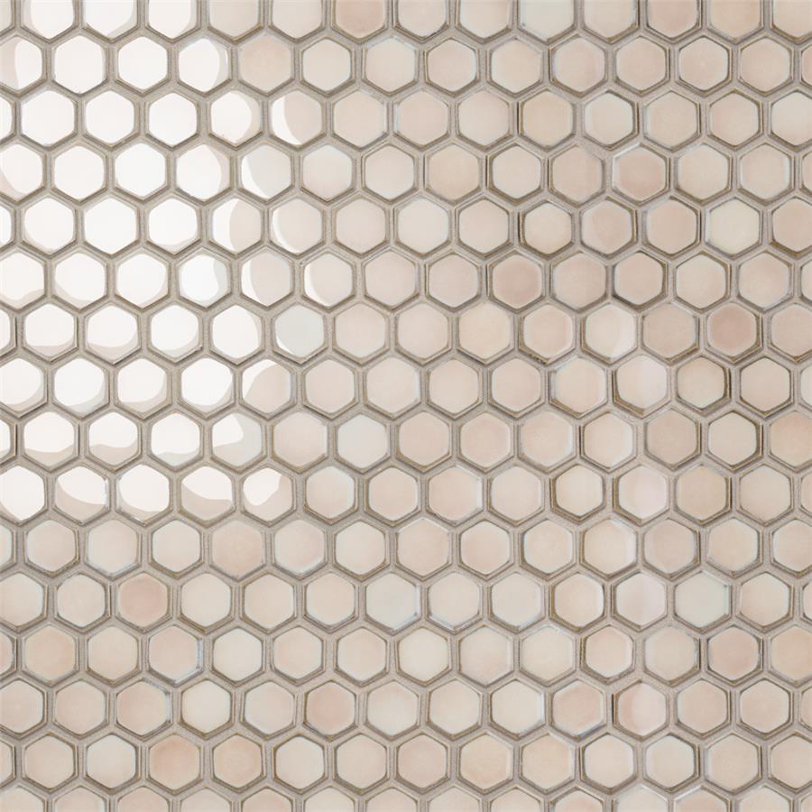 Our Hudson Hex 1 in. Truffle 13-1/4 in. x 11-7/8 in. Porcelain Mosaic Floor and Wall Tile instantly elevates spaces through a refreshing dose of geometric design. Featuring a reactive glaze with an eye-drop effect, these tiles have varying soft beige color tones that blend to taupe around the edges. This mosaic is a pleasing mixture of warm-toned tints with additional dimension added by the smooth, high-gloss finish. This porcelain mosaic floor and wall tile is unique yet simplistic enough to integrate into any design, ranging from traditional style renovations to modern home projects. Its impervious and frost-resistant features make this an ideal choice for both commercial and residential indoor and outdoor floor and wall installations including, kitchen backsplashes, bathroom showers and accent walls. This hexagon mosaic can be used as a whole sheet or cut into smaller strips as an accent piece. It is a perfect choice on its own or coordinated with other colors in our Hudson Hex series.