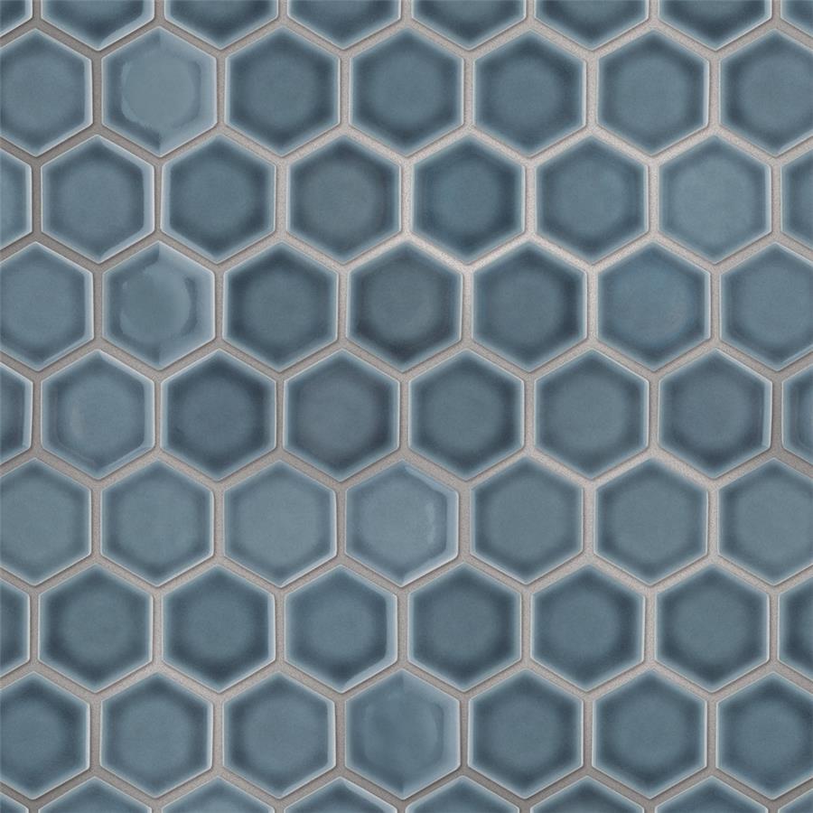 As a modern, enlarged deviation from the classic hexagon mosaic, our Hudson Due Hex 2 in. Storm Grey 12-1/2 in. x 11-1/4 in. Porcelain Mosaic Floor and Wall Tile instantly elevates spaces through a refreshing dose of geometric design. Featuring a reactive glaze with an eye-drop effect, these tiles have hues of dark grey that blend to white around the edges. This porcelain mosaic floor and wall tile creates a uniquely sporadic design through a pleasing mixture of cool-toned tints with additional dimension added by the smooth, high-gloss finish. Its impervious and frost-resistant features make this an ideal choice for both commercial and residential indoor and outdoor floor and wall installations including, kitchen backsplashes, bathroom showers and accent walls. This hexagon mosaic can be used as a whole sheet or cut into smaller strips as an accent piece. It is a perfect choice on its own or coordinated with other colors in our Hudson Due Hex series.