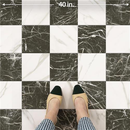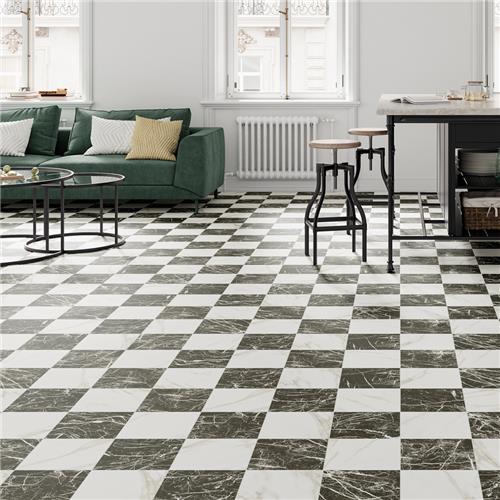 Capturing the appearance of a marble look, our Marbilia Chess Marquina Gold Porcelain Floor and Wall Tile features a slightly textured, matte finish, providing decorative appeal that adapts to a variety of stylistic contexts. Inspired by grand palaces and iconic chessboards, the Marbilia Chess subseries captures marble's luxury with a satin matte finish, blending refined marbles into a modern design that enhances sophisticated interiors with timeless charm and commercial durability. Containing 7 different print variations that are randomly distributed throughout each case, this black square tile offers a one-of-a-kind look. With its impervious, frost-resistant features, this tile is an ideal selection for indoor residential installations, including kitchens, bathrooms, backsplashes, showers, hallways and fireplace facades. This tile is a perfect choice on its own or paired with other products in the Marbilia Collection. Tile is the better choice for your space!