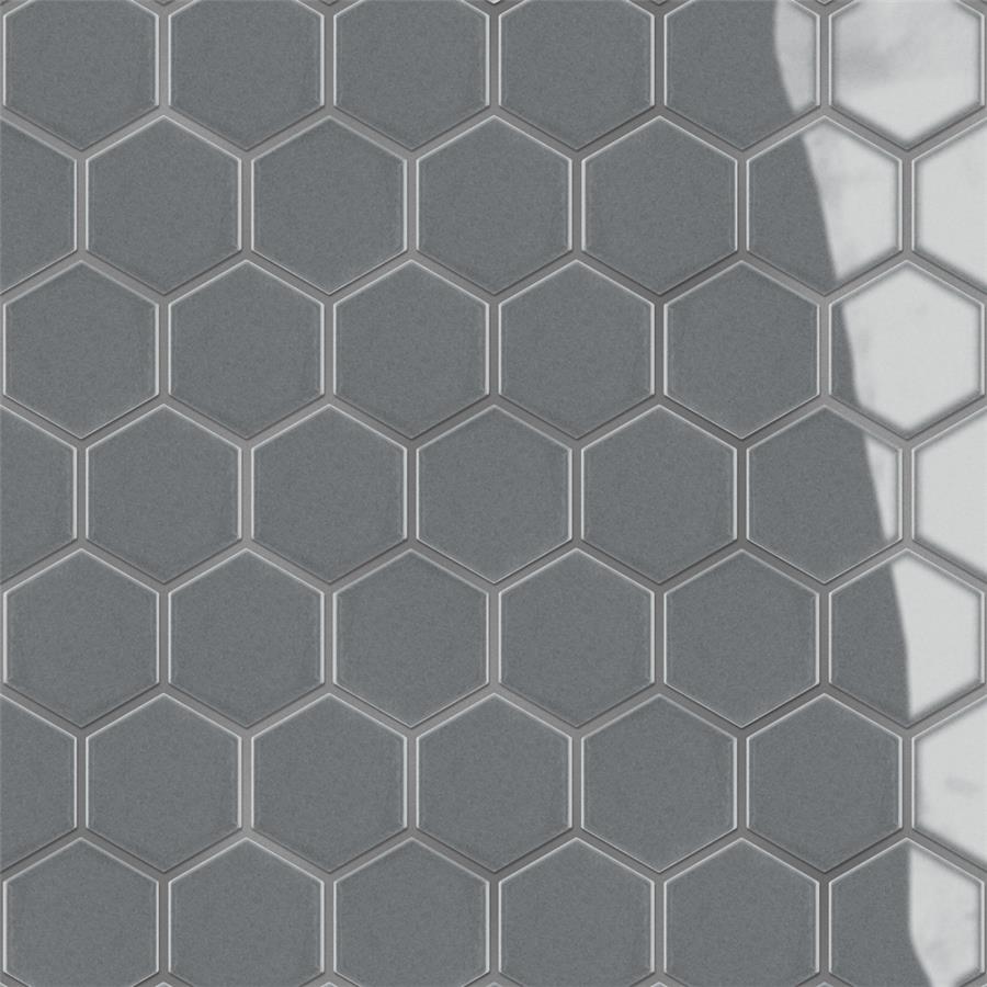 Transform your space into a tribute to retro design with our Metro Hex Glossy 2” Grey 10-1/2 in. x 11 in. Porcelain Mosaic. As a modern, enlarged deviation from the classic hexagon mosaic, this fresh option is a throwback to traditional retro design with a contemporary feel. Glossy grey hexagons are precisely arranged on an interlocking mesh to create a seamless installation. This minimalistic geometric porcelain mosaic is unique yet simplistic enough to integrate into any design, ranging from traditional style renovations to modern home projects. Its impervious, frost resistant and durable features make this an ideal tile for both residential indoor and outdoor use, including backsplashes, bathrooms, kitchens and patios.